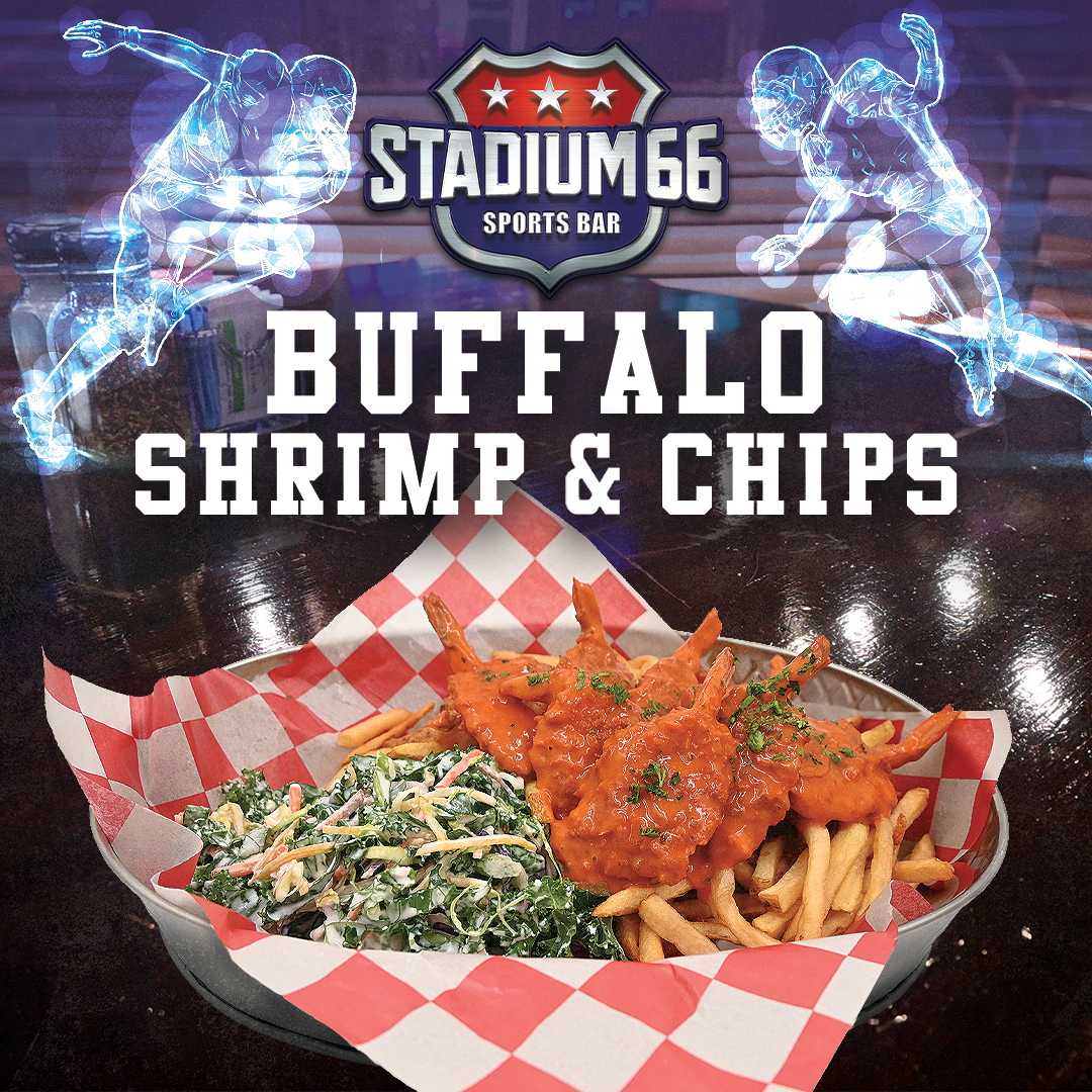 Tossed in our Stadium buffalo sauce, and served with blue cheese celery slaw, and crispy fries.